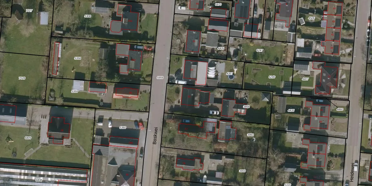 Het perceel waarop Boskwei 55 staat heeft een oppervlakte van 930 m². Dit is een groot perceel. De perceeloppervlakte wordt geregistreerd door het Kadaster. Gedetailleerde informatie over de maten van dit perceel kunt u vinden in het rapport Kadastrale kaart met maatvoering van Boskwei 55.