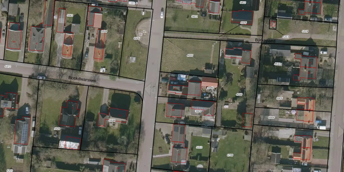 Het perceel waarop Boskwei 67 staat heeft een oppervlakte van 475 m². Dit is een groot perceel. De perceeloppervlakte wordt geregistreerd door het Kadaster. Gedetailleerde informatie over de maten van dit perceel kunt u vinden in het rapport Kadastrale kaart met maatvoering van Boskwei 67.