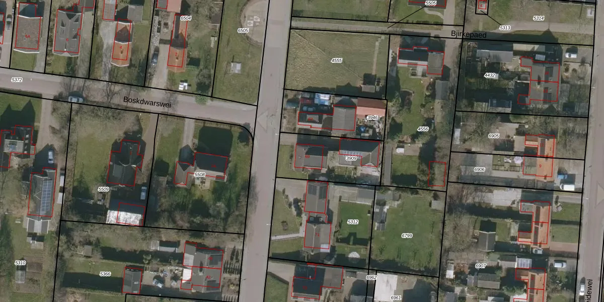 Het perceel waarop Boskwei 69 staat heeft een oppervlakte van 510 m². Dit is een groot perceel. De perceeloppervlakte wordt geregistreerd door het Kadaster. Gedetailleerde informatie over de maten van dit perceel kunt u vinden in het rapport Kadastrale kaart met maatvoering van Boskwei 69.