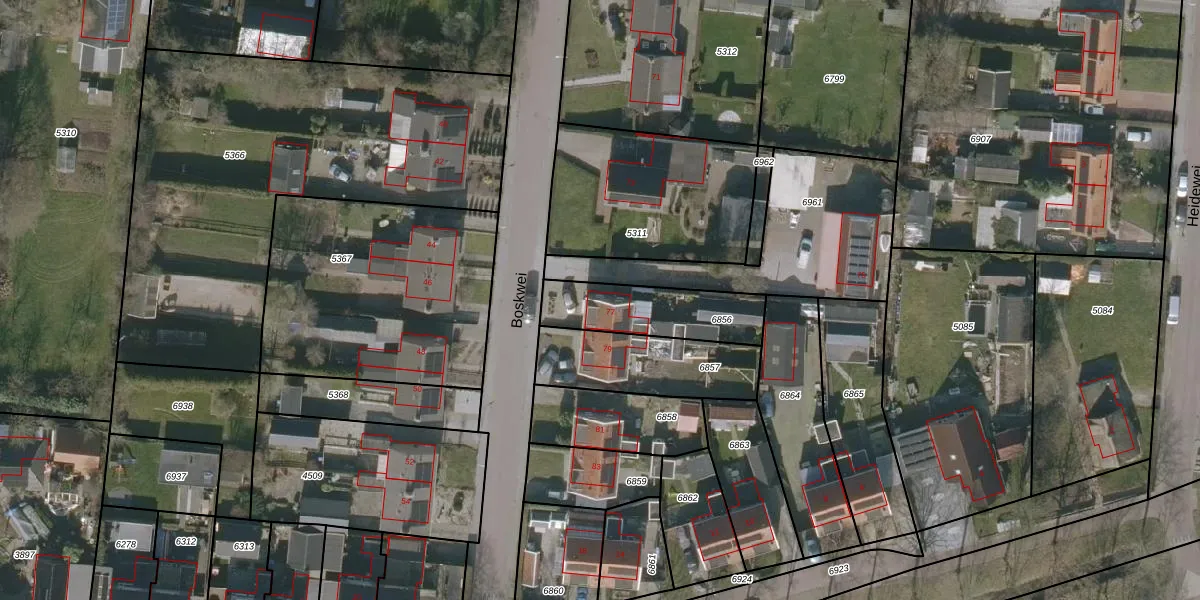 Het perceel waarop Boskwei 77 staat heeft een oppervlakte van 305 m². Dit is een groot perceel. De perceeloppervlakte wordt geregistreerd door het Kadaster. Gedetailleerde informatie over de maten van dit perceel kunt u vinden in het rapport Kadastrale kaart met maatvoering van Boskwei 77.