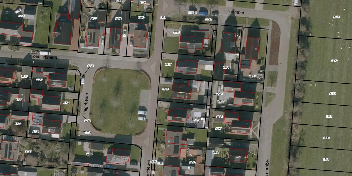 Het perceel waarop Heidewei 72 staat heeft een oppervlakte van 377 m². Dit is een groot perceel. De perceeloppervlakte wordt geregistreerd door het Kadaster. Gedetailleerde informatie over de maten van dit perceel kunt u vinden in het rapport Kadastrale kaart met maatvoering van Heidewei 72.