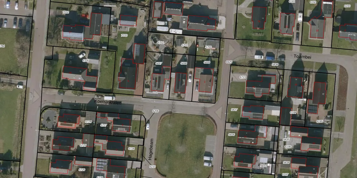 Het perceel waarop Koetsjekralen 4 staat heeft een oppervlakte van 338 m². Dit is een groot perceel. De perceeloppervlakte wordt geregistreerd door het Kadaster. Gedetailleerde informatie over de maten van dit perceel kunt u vinden in het rapport Kadastrale kaart met maatvoering van Koetsjekralen 4.
