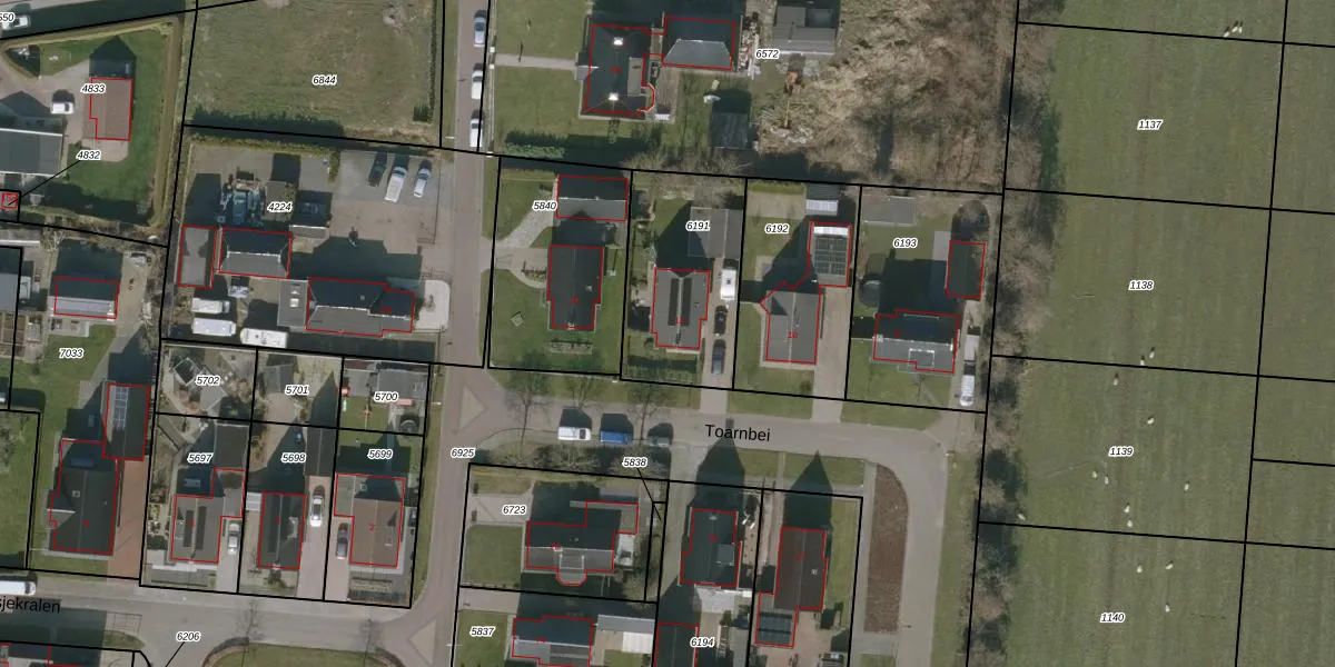 Het perceel waarop Toarnbei 12 staat heeft een oppervlakte van 541 m². Dit is een groot perceel. De perceeloppervlakte wordt geregistreerd door het Kadaster. Gedetailleerde informatie over de maten van dit perceel kunt u vinden in het rapport Kadastrale kaart met maatvoering van Toarnbei 12.