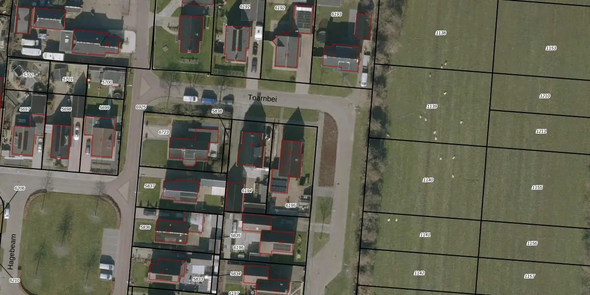 Het perceel waarop Toarnbei 17 staat heeft een oppervlakte van 465 m². Dit is een groot perceel. De perceeloppervlakte wordt geregistreerd door het Kadaster. Gedetailleerde informatie over de maten van dit perceel kunt u vinden in het rapport Kadastrale kaart met maatvoering van Toarnbei 17.