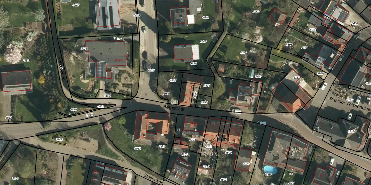 Bergstraat 88 is gelegen op kadastraal perceel SNN00A4806. Deze kadastrale aanduiding is uniek en wordt gebruikt door het Kadaster om eigendomsrechten en andere zakelijke rechten vast te leggen. Het perceel maakt onderdeel uit van de kadastrale gemeente Schinnen.