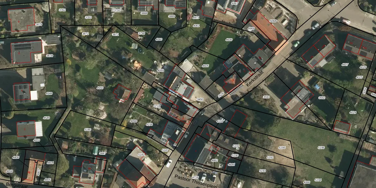 Kerkstraat 13 is gelegen op kadastraal perceel SNN00A4059. Deze kadastrale aanduiding is uniek en wordt gebruikt door het Kadaster om eigendomsrechten en andere zakelijke rechten vast te leggen. Het perceel maakt onderdeel uit van de kadastrale gemeente Schinnen.
