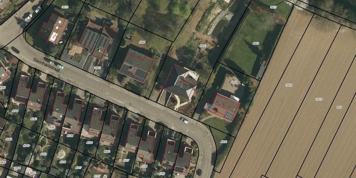 Steinhartstraat 7 is gelegen op kadastraal perceel SNN00A4802. Deze kadastrale aanduiding is uniek en wordt gebruikt door het Kadaster om eigendomsrechten en andere zakelijke rechten vast te leggen. Het perceel maakt onderdeel uit van de kadastrale gemeente Schinnen.