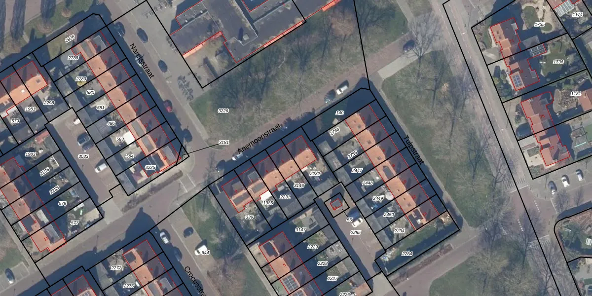 Het perceel waarop Anemoonstraat 1 staat heeft een oppervlakte van 199 m². Dit is een middelgroot perceel. De perceeloppervlakte wordt geregistreerd door het Kadaster. Gedetailleerde informatie over de maten van dit perceel kunt u vinden in het rapport Kadastrale kaart met maatvoering van Anemoonstraat 1.