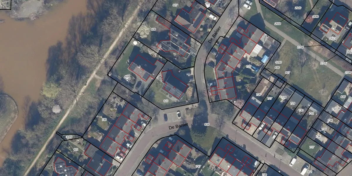 Het perceel waarop De Banier 21 staat heeft een oppervlakte van 570 m². Dit is een groot perceel. De perceeloppervlakte wordt geregistreerd door het Kadaster. Gedetailleerde informatie over de maten van dit perceel kunt u vinden in het rapport Kadastrale kaart met maatvoering van De Banier 21.