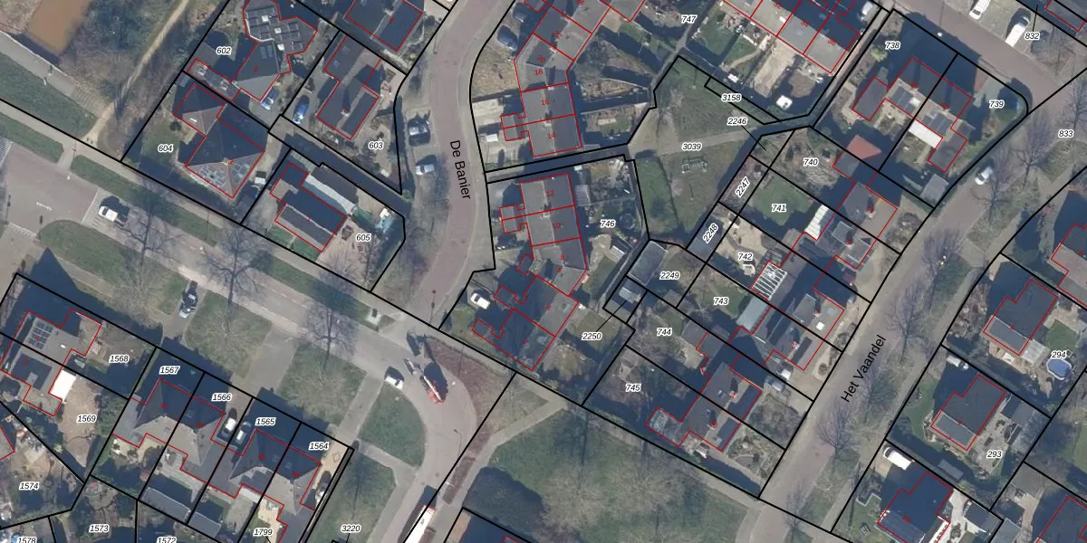 Het perceel waarop De Banier 6 staat heeft een oppervlakte van 1090 m². Dit is een zeer groot perceel. De perceeloppervlakte wordt geregistreerd door het Kadaster. Gedetailleerde informatie over de maten van dit perceel kunt u vinden in het rapport Kadastrale kaart met maatvoering van De Banier 6.