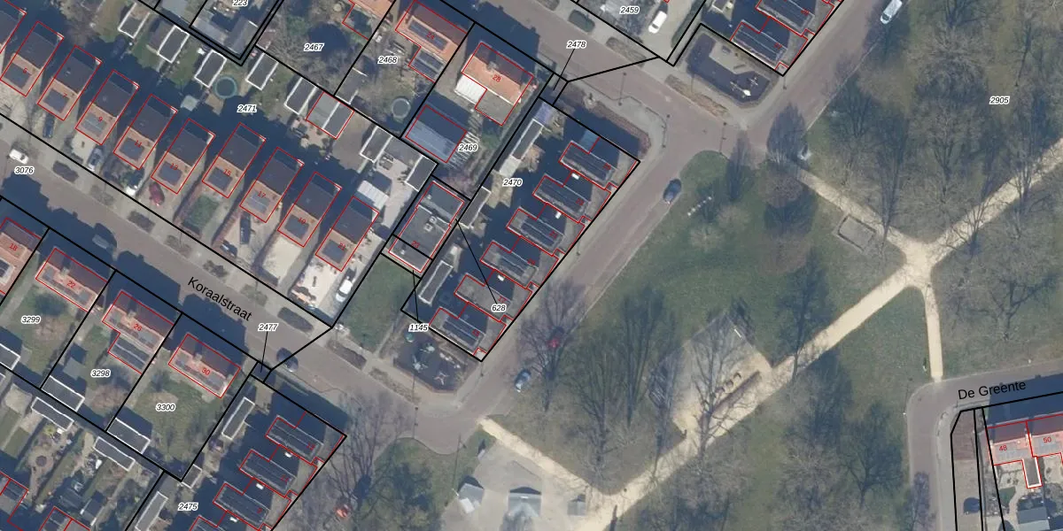 Het perceel waarop De Greente 19 staat heeft een oppervlakte van 972 m². Dit is een groot perceel. De perceeloppervlakte wordt geregistreerd door het Kadaster. Gedetailleerde informatie over de maten van dit perceel kunt u vinden in het rapport Kadastrale kaart met maatvoering van De Greente 19.