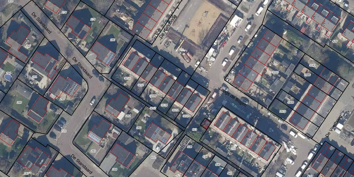 Het perceel waarop De Handboog 12 staat heeft een oppervlakte van 159 m². Dit is een middelgroot perceel. De perceeloppervlakte wordt geregistreerd door het Kadaster. Gedetailleerde informatie over de maten van dit perceel kunt u vinden in het rapport Kadastrale kaart met maatvoering van De Handboog 12.