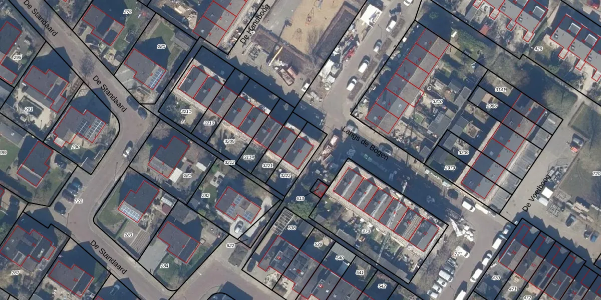 Het perceel waarop De Handboog 14 staat heeft een oppervlakte van 196 m². Dit is een middelgroot perceel. De perceeloppervlakte wordt geregistreerd door het Kadaster. Gedetailleerde informatie over de maten van dit perceel kunt u vinden in het rapport Kadastrale kaart met maatvoering van De Handboog 14.