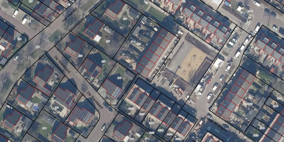 Het perceel waarop De Handboog 6 staat heeft een oppervlakte van 1172 m². Dit is een zeer groot perceel. De perceeloppervlakte wordt geregistreerd door het Kadaster. Gedetailleerde informatie over de maten van dit perceel kunt u vinden in het rapport Kadastrale kaart met maatvoering van De Handboog 6.