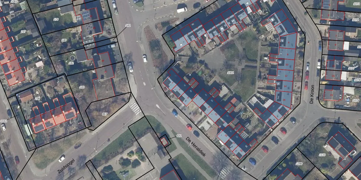 Het perceel waarop De Heraldiek 3 staat heeft een oppervlakte van 5493 m². Dit is een zeer groot perceel. De perceeloppervlakte wordt geregistreerd door het Kadaster. Gedetailleerde informatie over de maten van dit perceel kunt u vinden in het rapport Kadastrale kaart met maatvoering van De Heraldiek 3.