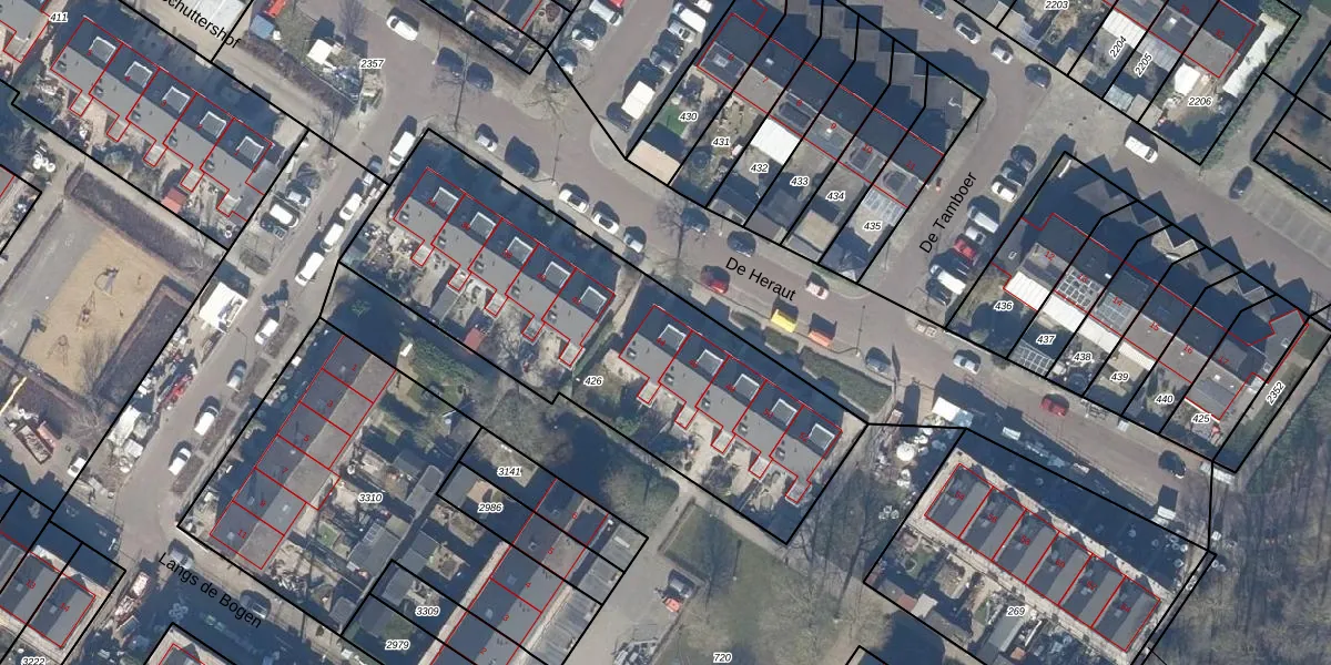 Het perceel waarop De Heraut 44 staat heeft een oppervlakte van 1821 m². Dit is een zeer groot perceel. De perceeloppervlakte wordt geregistreerd door het Kadaster. Gedetailleerde informatie over de maten van dit perceel kunt u vinden in het rapport Kadastrale kaart met maatvoering van De Heraut 44.
