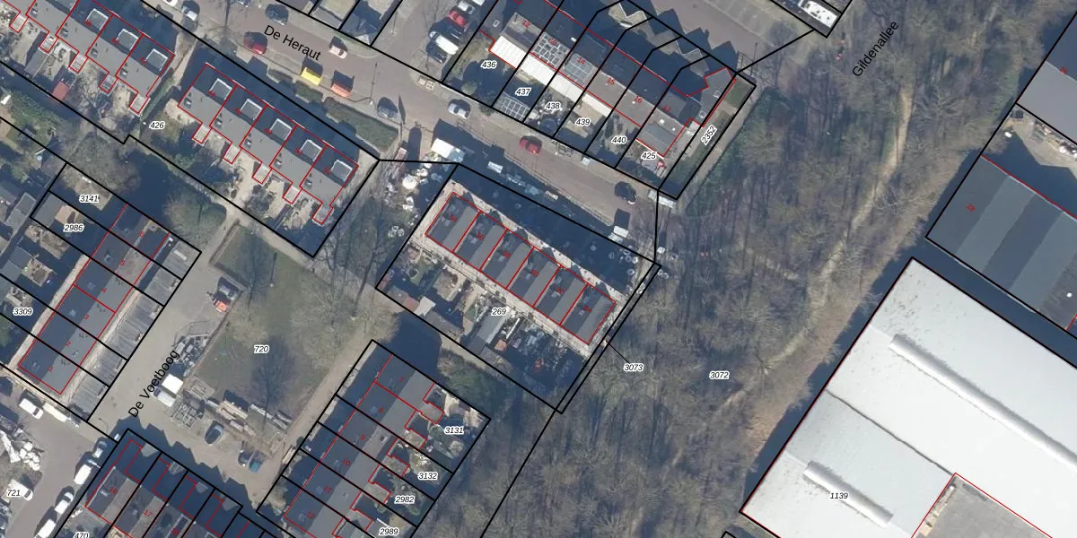 Het perceel waarop De Heraut 60 staat heeft een oppervlakte van 1222 m². Dit is een zeer groot perceel. De perceeloppervlakte wordt geregistreerd door het Kadaster. Gedetailleerde informatie over de maten van dit perceel kunt u vinden in het rapport Kadastrale kaart met maatvoering van De Heraut 60.