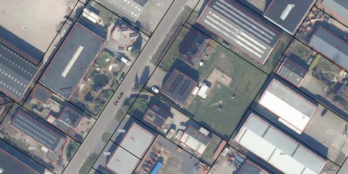 Het perceel waarop De Kolk 48 staat heeft een oppervlakte van 2583 m². Dit is een zeer groot perceel. De perceeloppervlakte wordt geregistreerd door het Kadaster. Gedetailleerde informatie over de maten van dit perceel kunt u vinden in het rapport Kadastrale kaart met maatvoering van De Kolk 48.