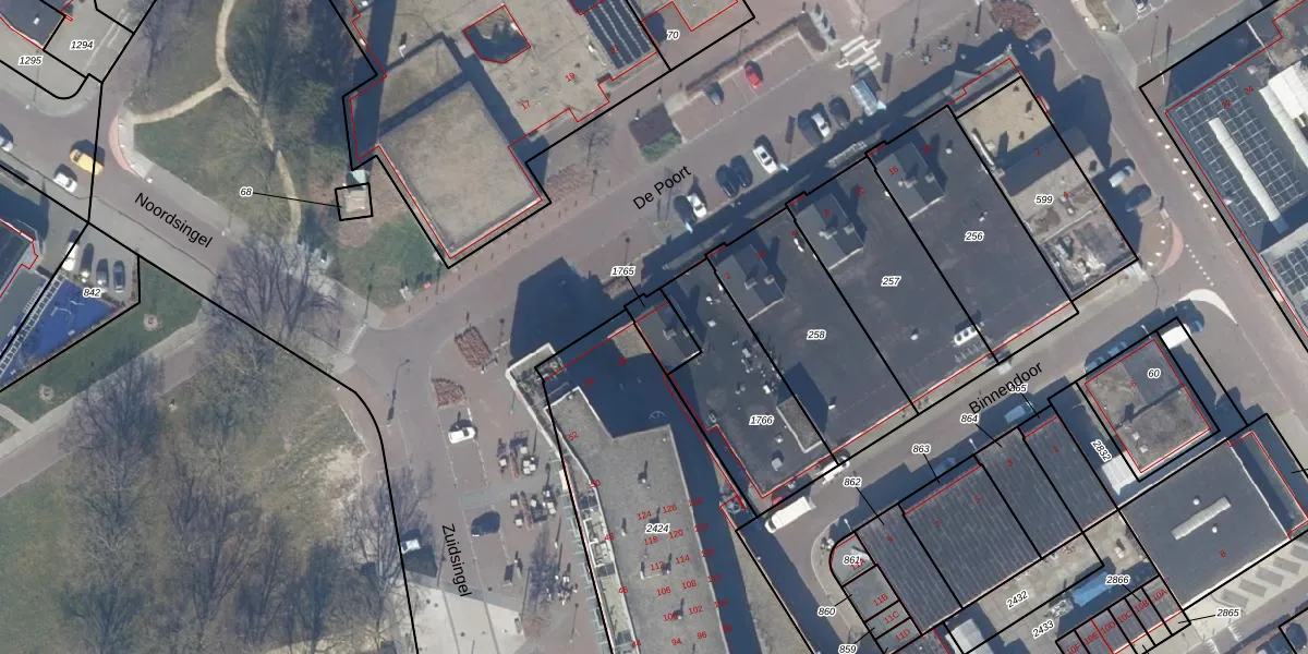 Het perceel waarop De Poort 2 staat heeft een oppervlakte van 76 m². Dit is een klein perceel. De perceeloppervlakte wordt geregistreerd door het Kadaster. Gedetailleerde informatie over de maten van dit perceel kunt u vinden in het rapport Kadastrale kaart met maatvoering van De Poort 2.