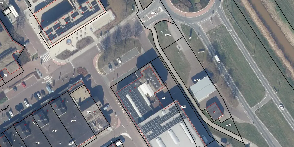 Het perceel waarop De Poort 24 staat heeft een oppervlakte van 2185 m². Dit is een zeer groot perceel. De perceeloppervlakte wordt geregistreerd door het Kadaster. Gedetailleerde informatie over de maten van dit perceel kunt u vinden in het rapport Kadastrale kaart met maatvoering van De Poort 24.