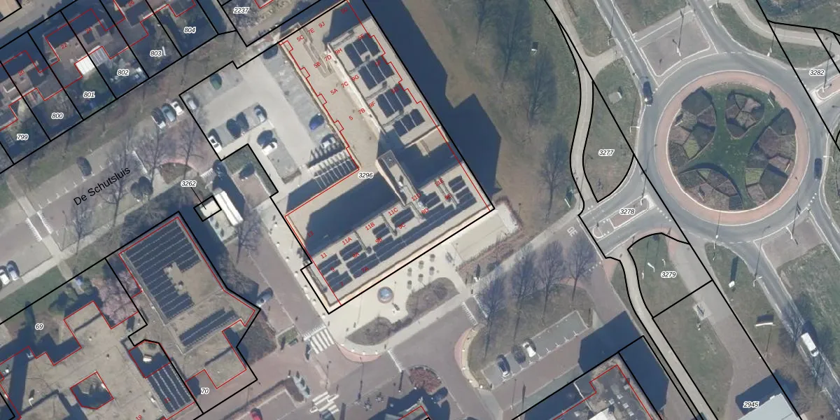 Het perceel waarop De Schutsluis 11-D staat heeft een oppervlakte van 2795 m². Dit is een zeer groot perceel. De perceeloppervlakte wordt geregistreerd door het Kadaster. Gedetailleerde informatie over de maten van dit perceel kunt u vinden in het rapport Kadastrale kaart met maatvoering van De Schutsluis 11-D.