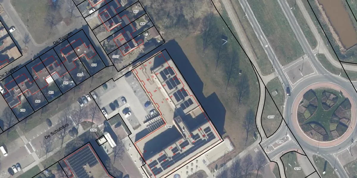 Het perceel waarop De Schutsluis 5-F staat heeft een oppervlakte van 2795 m². Dit is een zeer groot perceel. De perceeloppervlakte wordt geregistreerd door het Kadaster. Gedetailleerde informatie over de maten van dit perceel kunt u vinden in het rapport Kadastrale kaart met maatvoering van De Schutsluis 5-F.