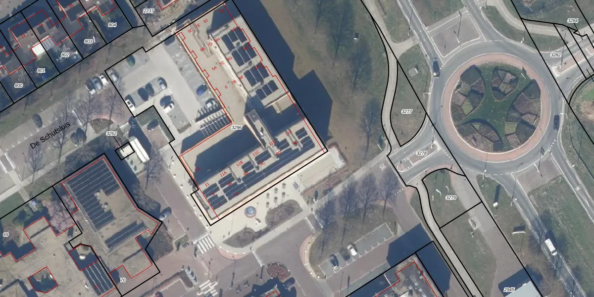 Het perceel waarop De Schutsluis 9-E staat heeft een oppervlakte van 2795 m². Dit is een zeer groot perceel. De perceeloppervlakte wordt geregistreerd door het Kadaster. Gedetailleerde informatie over de maten van dit perceel kunt u vinden in het rapport Kadastrale kaart met maatvoering van De Schutsluis 9-E.