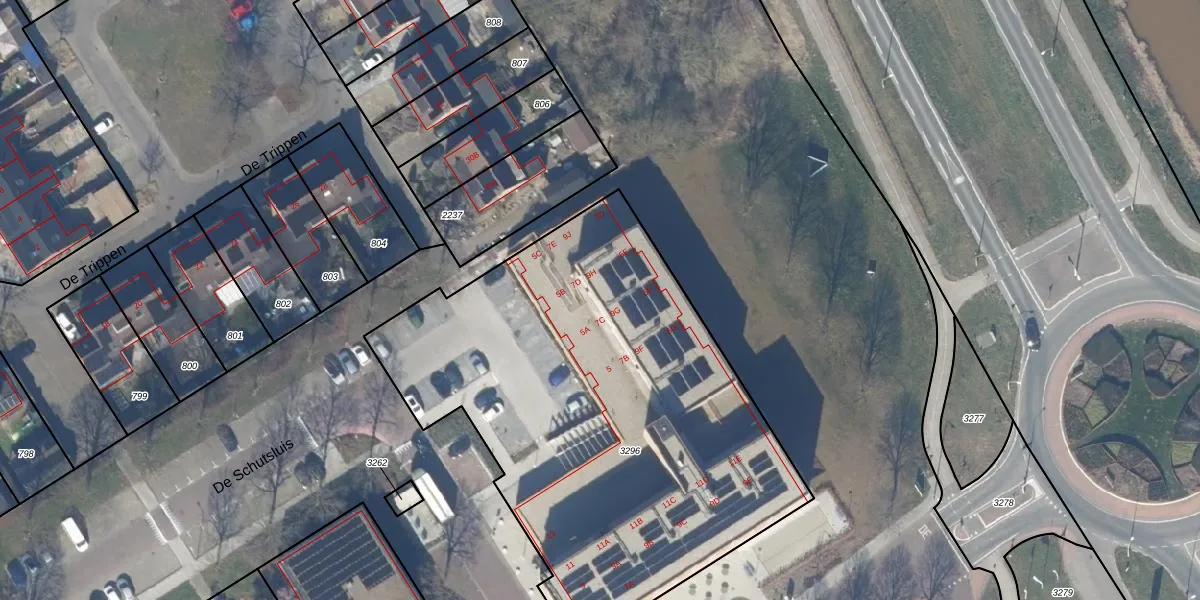 Het perceel waarop De Schutsluis 9-H staat heeft een oppervlakte van 2795 m². Dit is een zeer groot perceel. De perceeloppervlakte wordt geregistreerd door het Kadaster. Gedetailleerde informatie over de maten van dit perceel kunt u vinden in het rapport Kadastrale kaart met maatvoering van De Schutsluis 9-H.