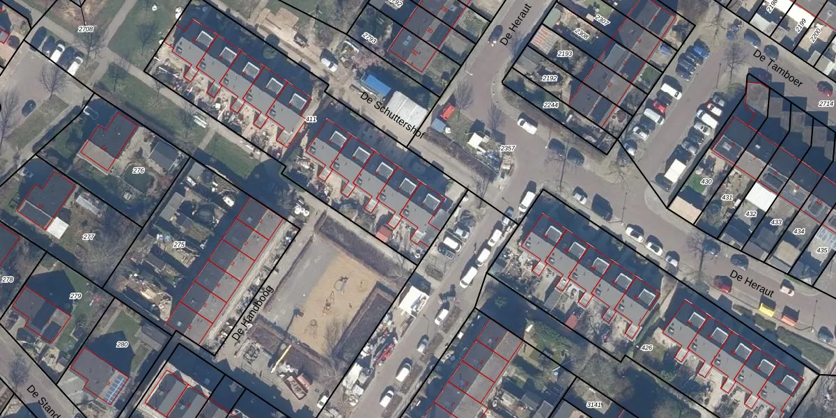 De Schuttershof 1 is gelegen op kadastraal perceel DTN01G411. Deze kadastrale aanduiding is uniek en wordt gebruikt door het Kadaster om eigendomsrechten en andere zakelijke rechten vast te leggen. Het perceel maakt onderdeel uit van de kadastrale gemeente Dronten.