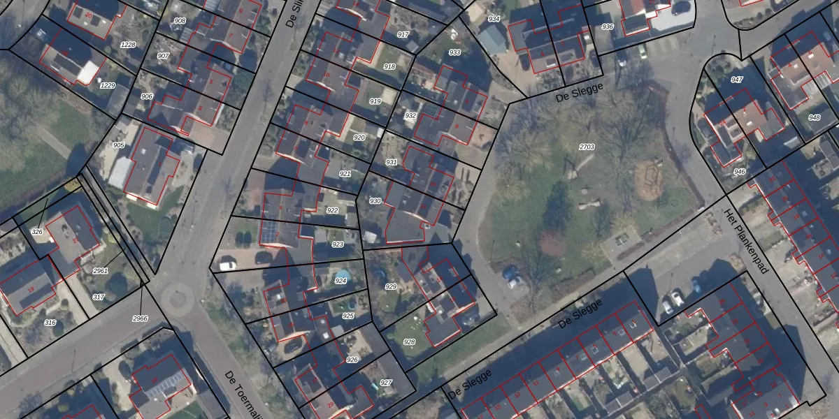 Het perceel waarop De Slegge 12 staat heeft een oppervlakte van 330 m². Dit is een groot perceel. De perceeloppervlakte wordt geregistreerd door het Kadaster. Gedetailleerde informatie over de maten van dit perceel kunt u vinden in het rapport Kadastrale kaart met maatvoering van De Slegge 12.