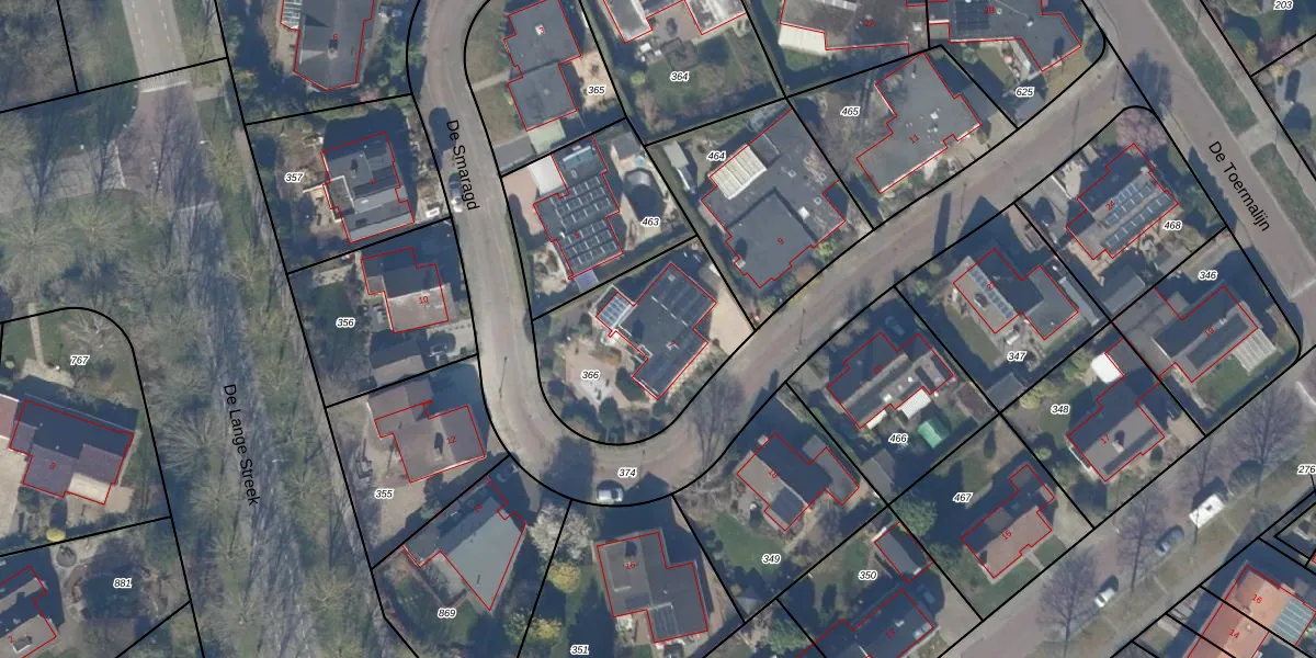 Het perceel waarop De Smaragd 7 staat heeft een oppervlakte van 669 m². Dit is een groot perceel. De perceeloppervlakte wordt geregistreerd door het Kadaster. Gedetailleerde informatie over de maten van dit perceel kunt u vinden in het rapport Kadastrale kaart met maatvoering van De Smaragd 7.