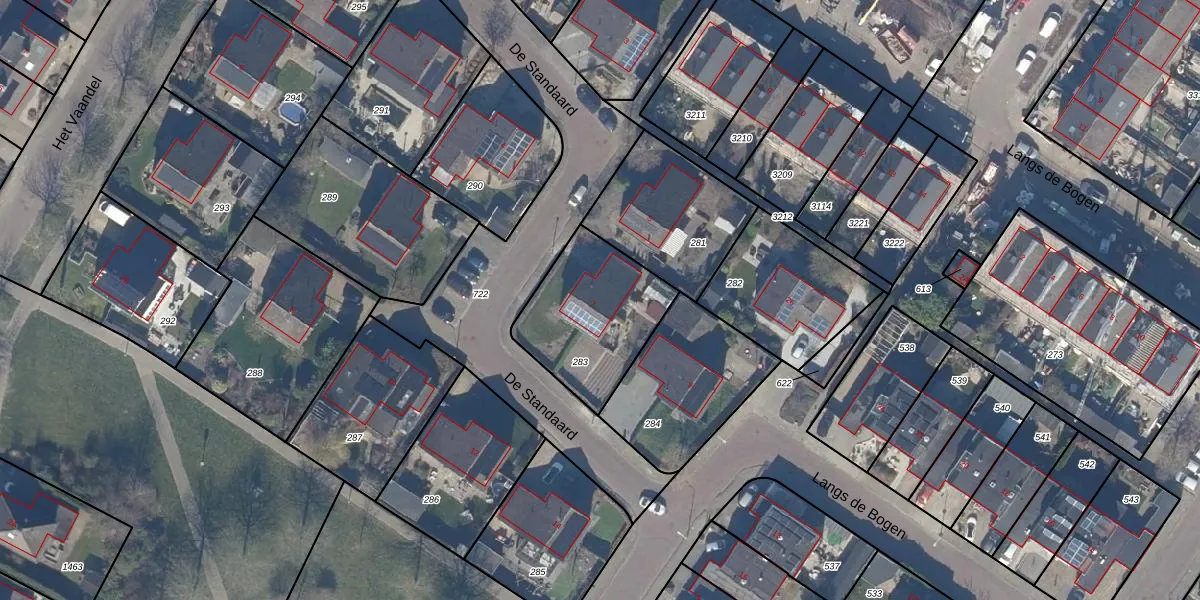 Het perceel waarop De Standaard 7 staat heeft een oppervlakte van 467 m². Dit is een groot perceel. De perceeloppervlakte wordt geregistreerd door het Kadaster. Gedetailleerde informatie over de maten van dit perceel kunt u vinden in het rapport Kadastrale kaart met maatvoering van De Standaard 7.