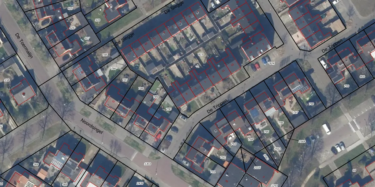 De Trippen 3 is gelegen op kadastraal perceel DTN01G823. Deze kadastrale aanduiding is uniek en wordt gebruikt door het Kadaster om eigendomsrechten en andere zakelijke rechten vast te leggen. Het perceel maakt onderdeel uit van de kadastrale gemeente Dronten.