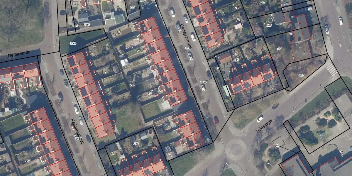 Het perceel waarop Gletsjerstraat 14 staat heeft een oppervlakte van 5455 m². Dit is een zeer groot perceel. De perceeloppervlakte wordt geregistreerd door het Kadaster. Gedetailleerde informatie over de maten van dit perceel kunt u vinden in het rapport Kadastrale kaart met maatvoering van Gletsjerstraat 14.