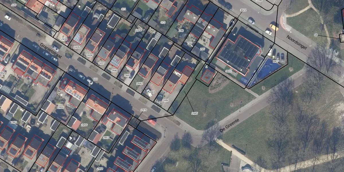 Granietstraat 19 is gelegen op kadastraal perceel DTN01G2444. Deze kadastrale aanduiding is uniek en wordt gebruikt door het Kadaster om eigendomsrechten en andere zakelijke rechten vast te leggen. Het perceel maakt onderdeel uit van de kadastrale gemeente Dronten.