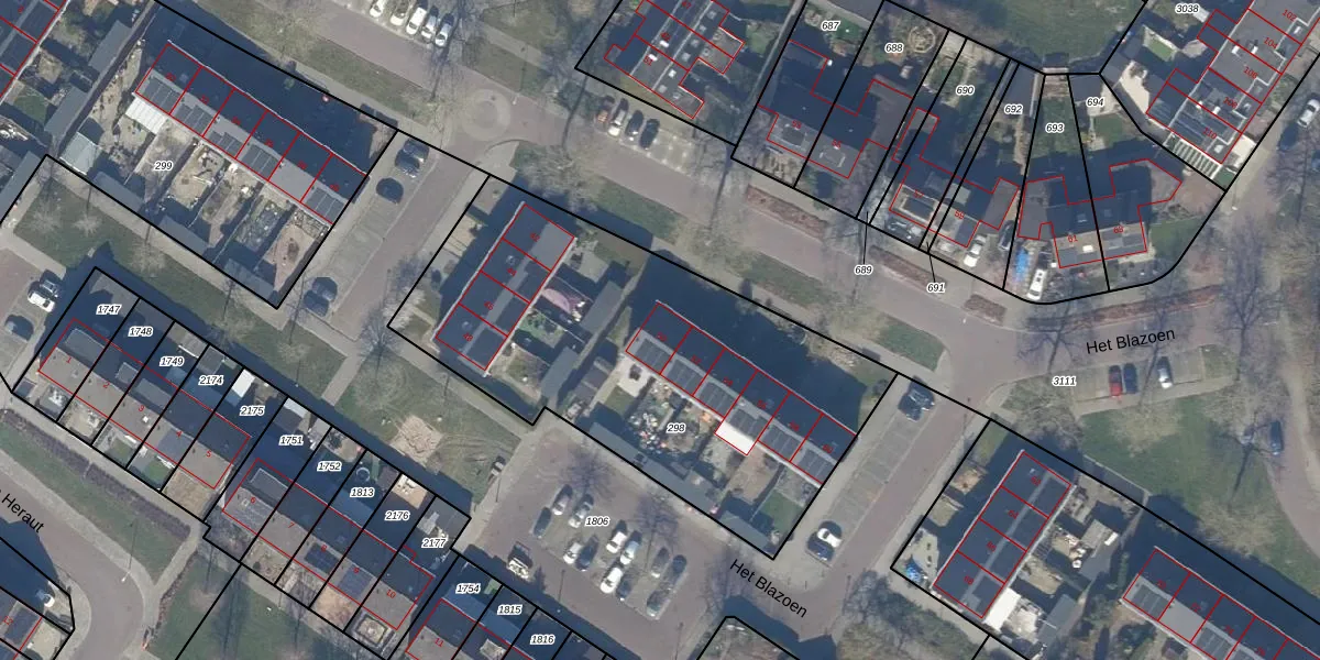 Het perceel waarop Het Blazoen 50 staat heeft een oppervlakte van 2100 m². Dit is een zeer groot perceel. De perceeloppervlakte wordt geregistreerd door het Kadaster. Gedetailleerde informatie over de maten van dit perceel kunt u vinden in het rapport Kadastrale kaart met maatvoering van Het Blazoen 50.