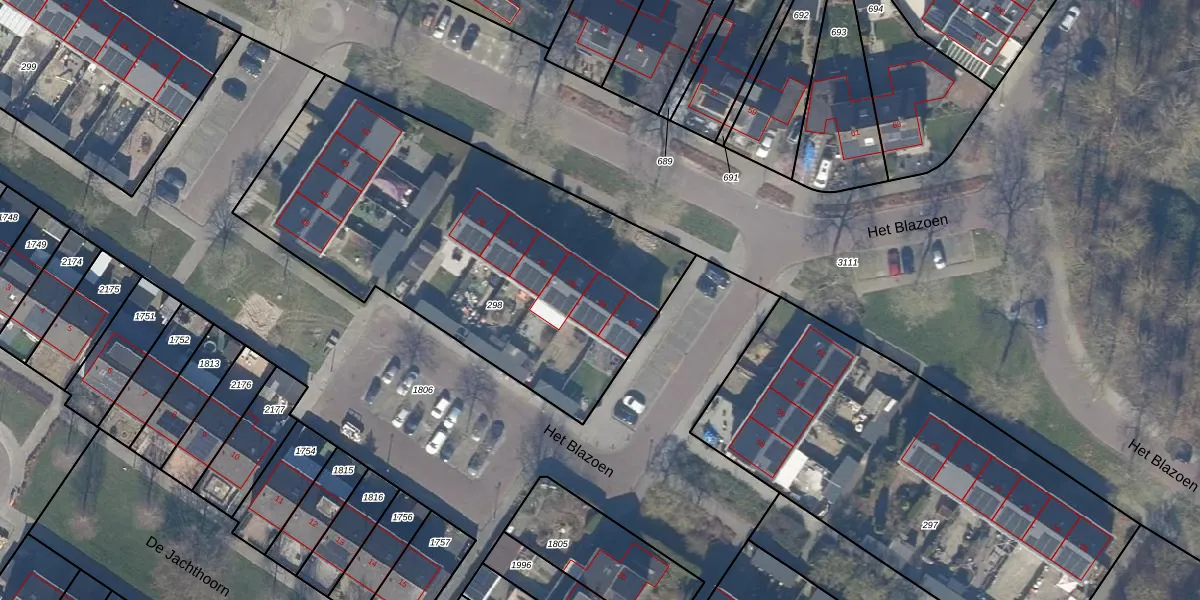 Het perceel waarop Het Blazoen 58 staat heeft een oppervlakte van 2100 m². Dit is een zeer groot perceel. De perceeloppervlakte wordt geregistreerd door het Kadaster. Gedetailleerde informatie over de maten van dit perceel kunt u vinden in het rapport Kadastrale kaart met maatvoering van Het Blazoen 58.
