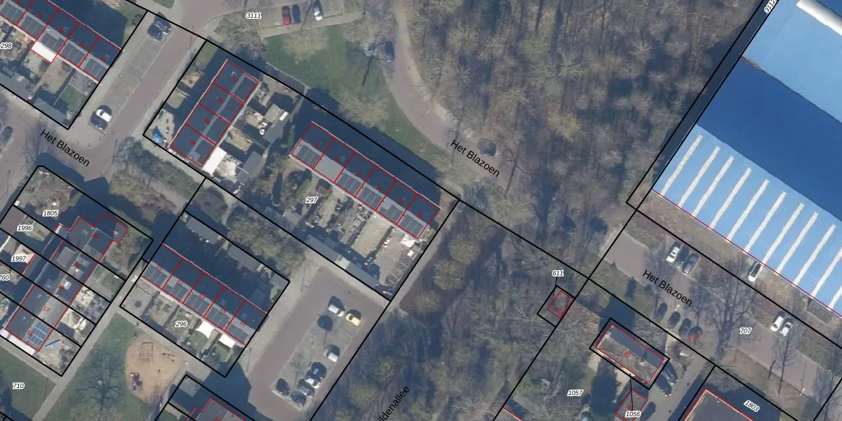 Het perceel waarop Het Blazoen 80 staat heeft een oppervlakte van 2043 m². Dit is een zeer groot perceel. De perceeloppervlakte wordt geregistreerd door het Kadaster. Gedetailleerde informatie over de maten van dit perceel kunt u vinden in het rapport Kadastrale kaart met maatvoering van Het Blazoen 80.