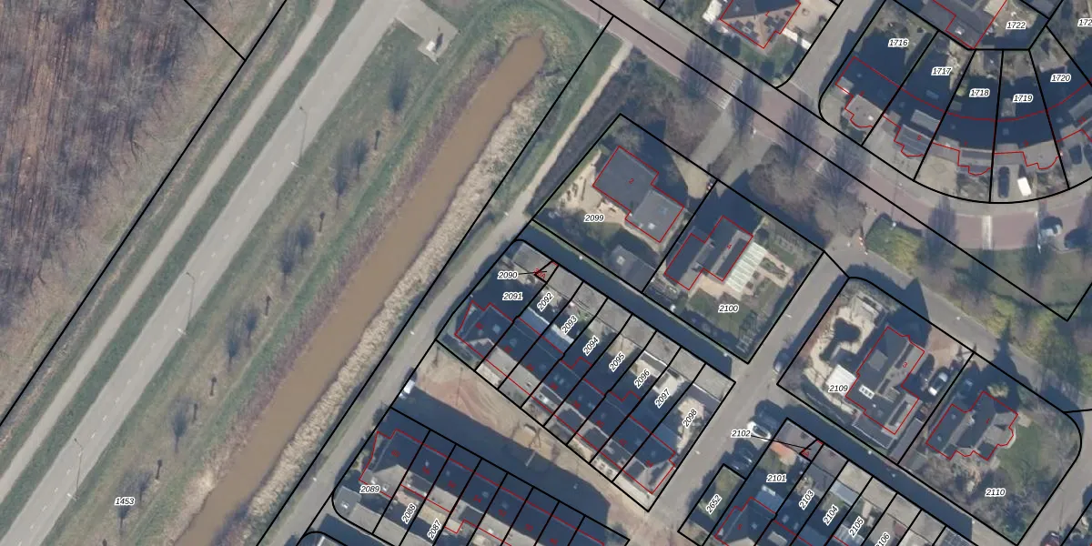 Het adres is gelegen op perceel 2090 in de sectie G en de kadastrale gemeente Dronten. De kadastrale aanduiding is aldus DTN01-G-2090. Het perceel is kleiner dan gemiddeld in Dronten. Het perceel is 8 m² groot, terwijl het gemiddelde ligt op 1,8 ha. De grootste perceeloppervlakte in de kadastrale gemeente is 25,03 km². De kleinste oppervlakte bedraagt 0 m². Op het perceel bevinden zich geen andere adressen. De huidige grenzen van het perceel zijn digitaal in de Basisregistratie Kadaster (BRK) geregistreerd op 31-08-2007.