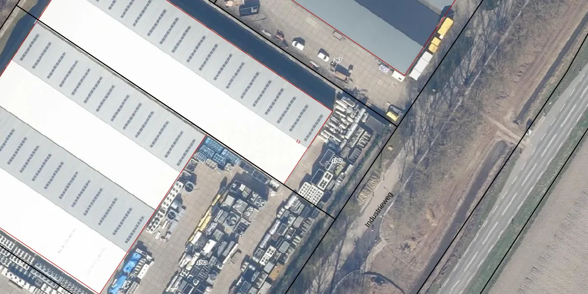 Het perceel waarop Industrieweg 13 staat heeft een oppervlakte van 4965 m². Dit is een zeer groot perceel. De perceeloppervlakte wordt geregistreerd door het Kadaster. Gedetailleerde informatie over de maten van dit perceel kunt u vinden in het rapport Kadastrale kaart met maatvoering van Industrieweg 13.
