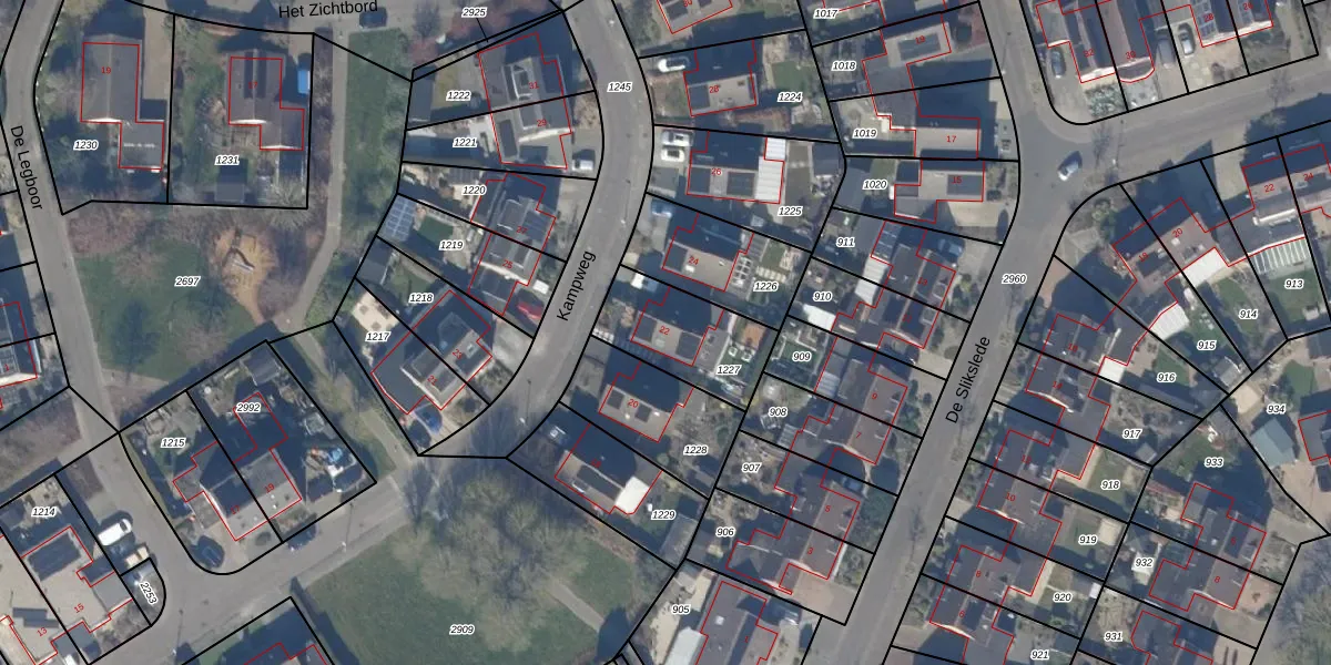 Het perceel waarop Kampweg 22 staat heeft een oppervlakte van 320 m². Dit is een groot perceel. De perceeloppervlakte wordt geregistreerd door het Kadaster. Gedetailleerde informatie over de maten van dit perceel kunt u vinden in het rapport Kadastrale kaart met maatvoering van Kampweg 22.