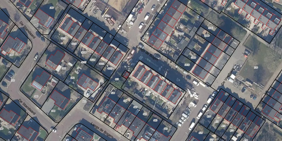 Het perceel waarop Langs de Bogen 2 staat heeft een oppervlakte van 951 m². Dit is een groot perceel. De perceeloppervlakte wordt geregistreerd door het Kadaster. Gedetailleerde informatie over de maten van dit perceel kunt u vinden in het rapport Kadastrale kaart met maatvoering van Langs de Bogen 2.