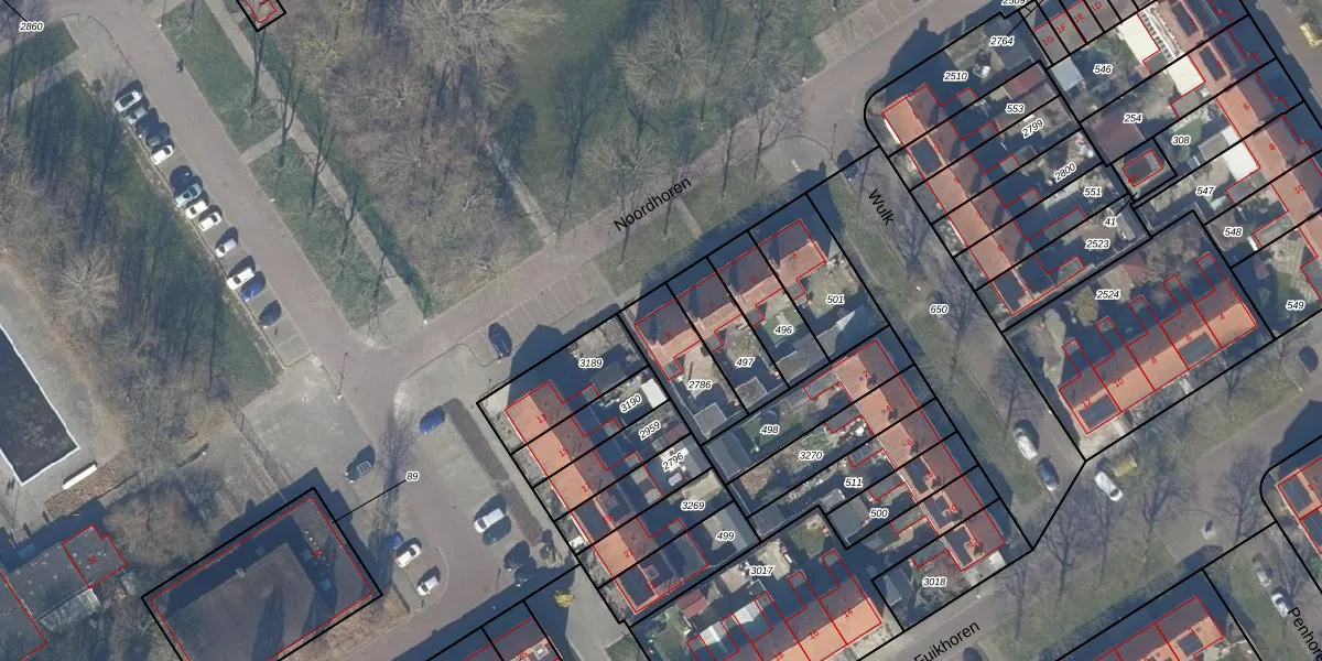 Gebruik de zoekbalk of klik op een perceel voor informatie over de adressen binnen dit perceel.