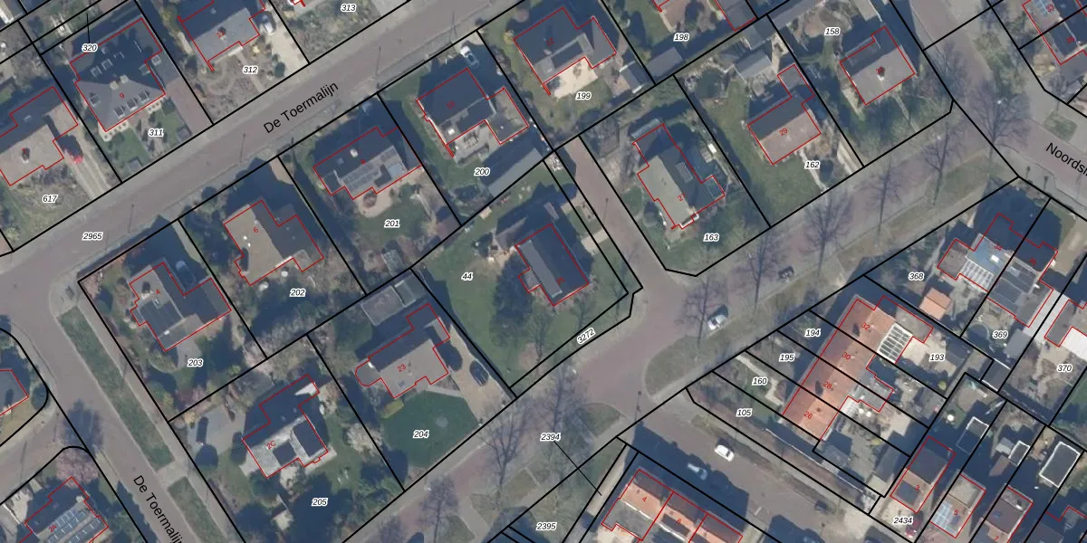Noordsingel 25 is gelegen op kadastraal perceel DTN01G44. Deze kadastrale aanduiding is uniek en wordt gebruikt door het Kadaster om eigendomsrechten en andere zakelijke rechten vast te leggen. Het perceel maakt onderdeel uit van de kadastrale gemeente Dronten.