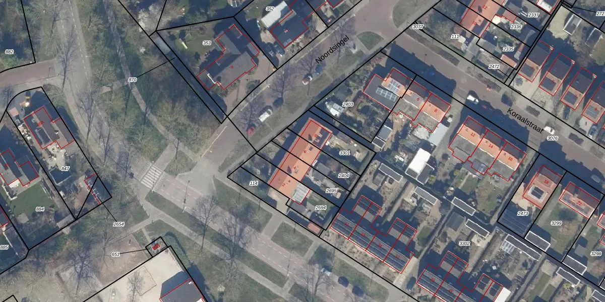 Noordsingel 6 is gelegen op kadastraal perceel DTN01G2404. Deze kadastrale aanduiding is uniek en wordt gebruikt door het Kadaster om eigendomsrechten en andere zakelijke rechten vast te leggen. Het perceel maakt onderdeel uit van de kadastrale gemeente Dronten.