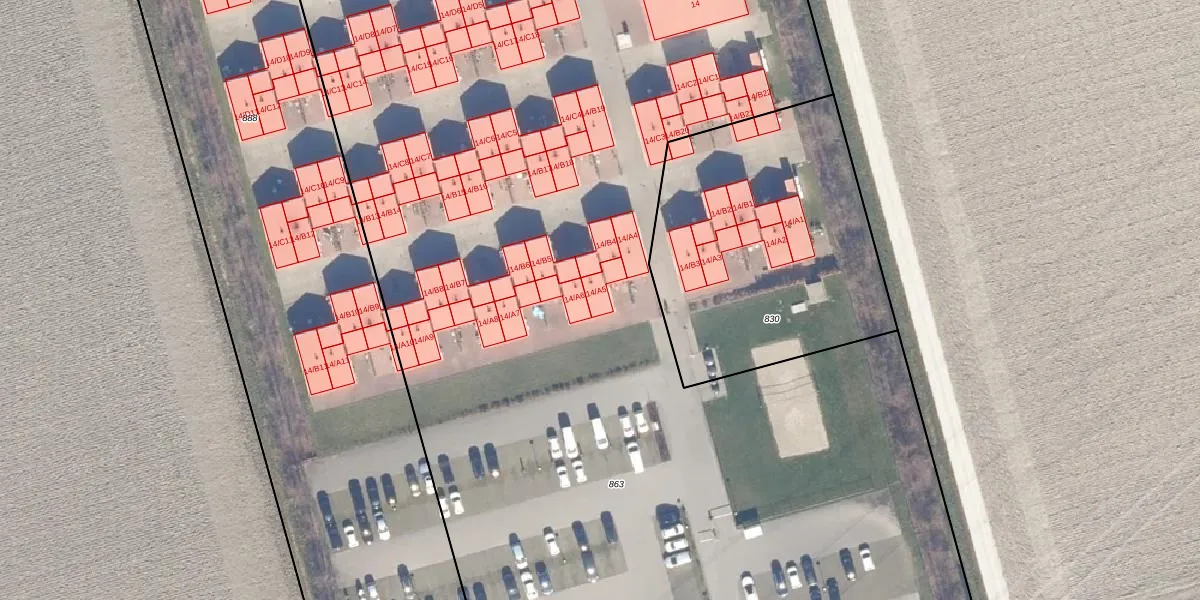 Het adres is gelegen op perceel 863 in de sectie H en de kadastrale gemeente Dronten. De kadastrale aanduiding is aldus DTN01-H-863. Het perceel is 1,8 ha groot. Dat is kleiner dan de gemiddelde perceeloppervlakte in Dronten, dat op 1,8 ha ligt. Het kleinste perceel in de kadastrale gemeente is 0 m² groot. De grootste perceeloppervlakte is 25,03 km². Op het perceel zijn 112 adressen aanwezig. De huidige grenzen van het perceel zijn digitaal in de Basisregistratie Kadaster (BRK) geregistreerd op 16-01-2012.