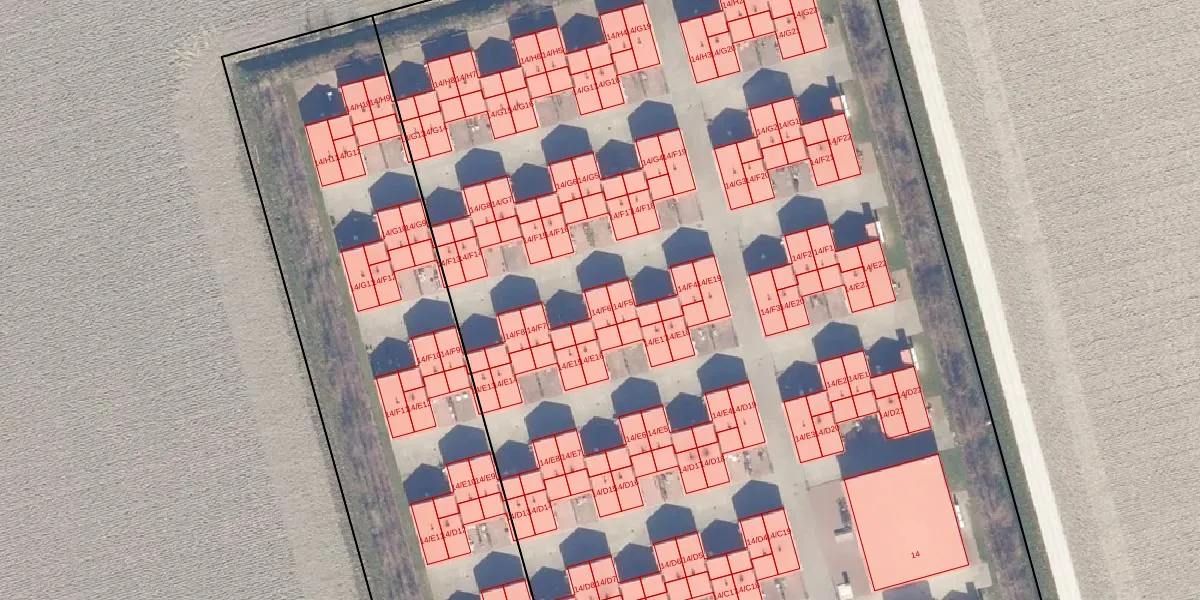 Het adres is gelegen op perceel 863 in de sectie H en de kadastrale gemeente Dronten. De kadastrale aanduiding is aldus DTN01-H-863. Het perceel is 1,8 ha groot. Dat is kleiner dan de gemiddelde perceeloppervlakte in Dronten, dat op 1,8 ha ligt. De grootste perceeloppervlakte in de kadastrale gemeente is 25,03 km². De kleinste oppervlakte bedraagt 0 m². Op het perceel zijn 112 adressen aanwezig. De huidige grenzen van het perceel zijn digitaal in de Basisregistratie Kadaster (BRK) geregistreerd op 16-01-2012.