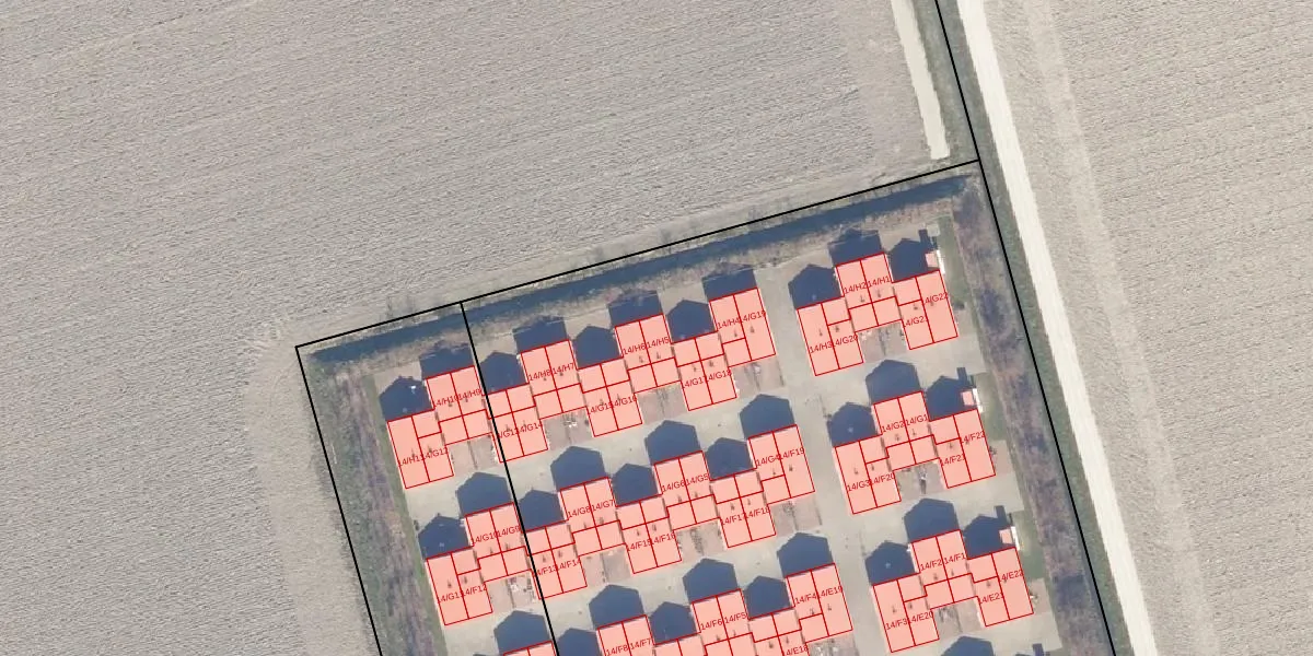 Het adres is gelegen op perceel 863 in de sectie H en de kadastrale gemeente Dronten. De kadastrale aanduiding is aldus DTN01-H-863. Het perceel is 1,8 ha groot. Dat is kleiner dan de gemiddelde perceeloppervlakte in Dronten, dat op 1,8 ha ligt. De grootste perceeloppervlakte in de kadastrale gemeente is 25,03 km². De kleinste oppervlakte bedraagt 0 m². Op het perceel liggen in totaal 112 adressen. De huidige grenzen van het perceel zijn digitaal in de Basisregistratie Kadaster (BRK) geregistreerd op 16-01-2012.