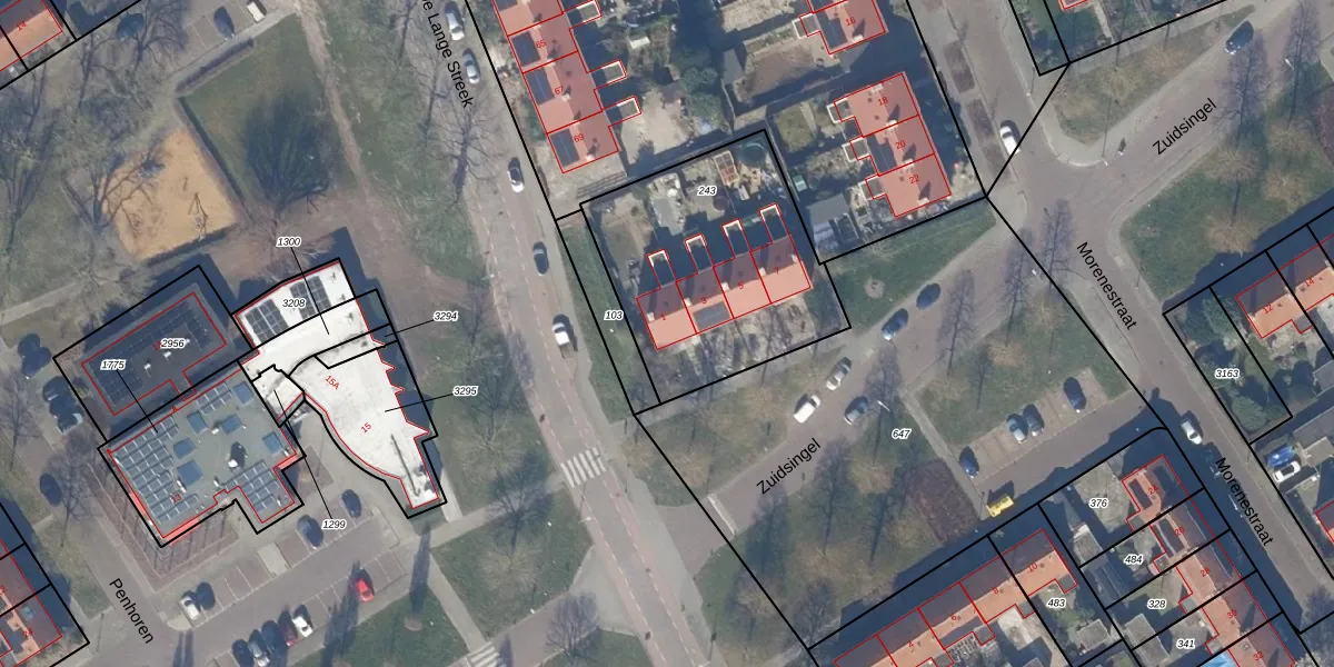 Het perceel waarop Zuidsingel 1 staat heeft een oppervlakte van 974 m². Dit is een groot perceel. De perceeloppervlakte wordt geregistreerd door het Kadaster. Gedetailleerde informatie over de maten van dit perceel kunt u vinden in het rapport Kadastrale kaart met maatvoering van Zuidsingel 1.