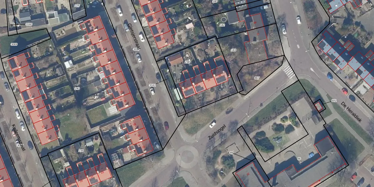 Het perceel waarop Zuidsingel 25 staat heeft een oppervlakte van 967 m². Dit is een groot perceel. De perceeloppervlakte wordt geregistreerd door het Kadaster. Gedetailleerde informatie over de maten van dit perceel kunt u vinden in het rapport Kadastrale kaart met maatvoering van Zuidsingel 25.